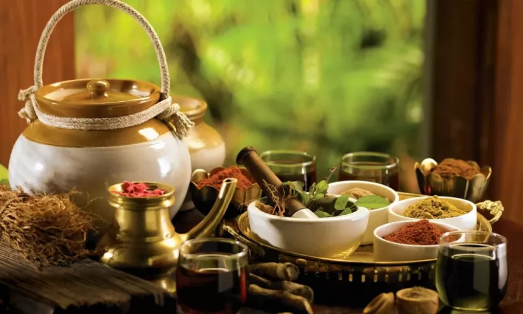 L’Ayurvéda, une thérapie complète du corps et de l’esprit : l’alimentation équilibrée, la méditation, le yoga, l’utilisation des huiles et des plantes médicinales, la respiration, les massages, etc.
